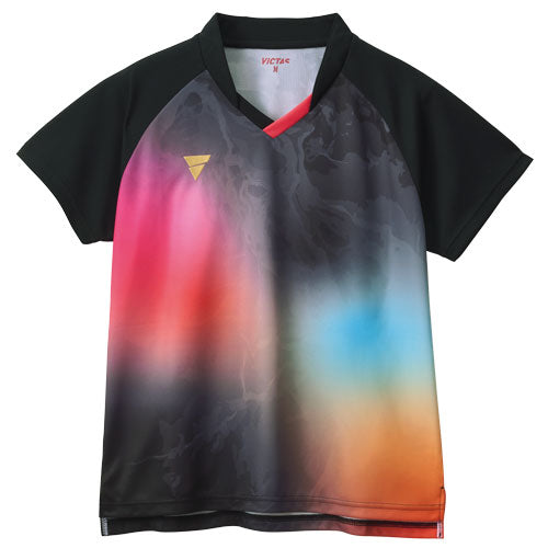 ・動きに合わせて表情を変える、印象的なグラデーショングラフィックを採用したレディスゲームシャツ。